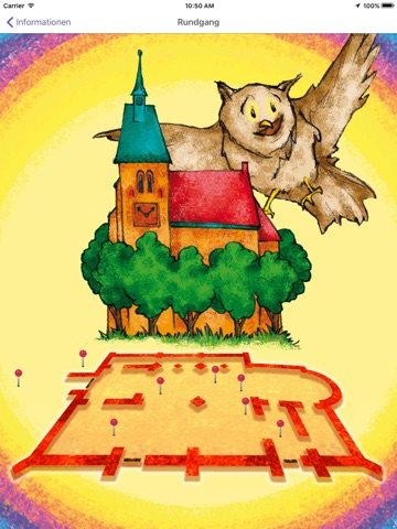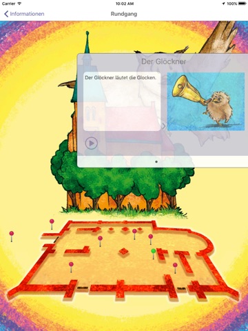 Ein Ortsmarker in der App zeigt, welche Kirche sie schon besucht haben. Auch ein Glossar und eine prototypische Kirche sind vorhanden.