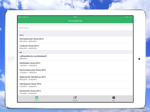 Mit der Kirwakalender-App von Kirwa-Gemeinde.de hast du direkt auf deinem iPhone und iPad die aktuellen Kirwatermine, Informationen zu den einzelnen Kirchweihen und mehr!