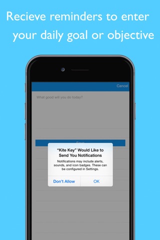 This is the question you will be prompted with each morning. This can be your goal, good deed, or chief aim of the day.