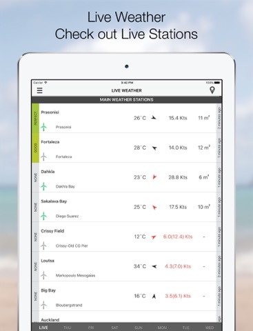 Monitors you favourites spots and for each day of the week we show you only the spots that have rideable conditions and the best time to kite. No more checking around multiple pages to find the best conditions and missing out sessions.