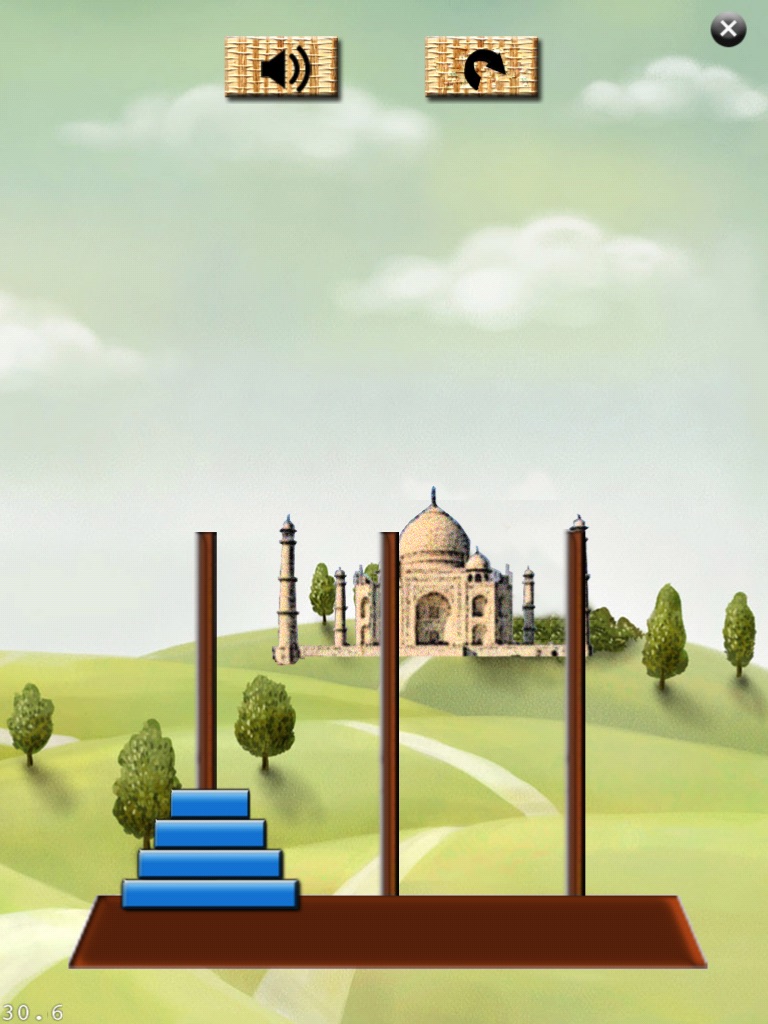 The Towers of Hanoi was originally a game played by the gods of Indian mythology. According to legend, when the world was created the gods made three golden pillars and on one of the pillars they stacked 64 different-sized golden disks from biggest to smallest. The gods demanded that their subjects move the pile of disks from one tower to another. The rules were thus: a bigger disk could not be placed on top of a smaller one and the disks must be moved one at a time.