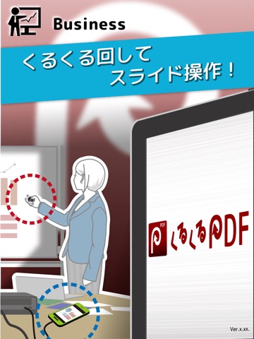 You can store your PDF data by sending from another device via iTunes, or by sharing between apps. Browse your PDF and move through your slideshow forwards/backwards on your mobile device.