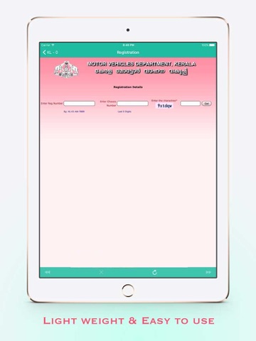 Kerala MVD Guide is a perfect assistant, which provides all the vehicle (In Kerala) related information at your finger tip. It is very light weight, easy to use and integrated with a pleasing user interface experience.