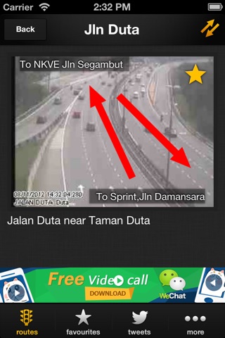 Get ahead of the notorious traffic in KL with this app that gives you a glimpse of the traffic condition in all major highways and roads. Plan your routes better with the help of the latest traffic images and mark your frequented routes under "Favourites" for even quicker access.