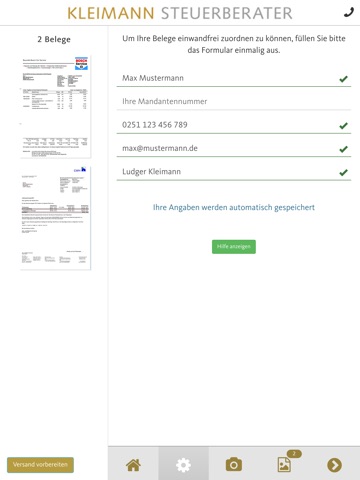 Mithilfe dieser App können Belege, Dokumente und andere Schriftstücke schnell, sicher und komfortabel an Ihren Steuerberater Ludger Kleimann gesendet werden. Machen Sie einfach ein oder mehrere Fotos von den Belegen und versenden Sie diese mit einem Klick direkt aus der App heraus an unsere Kanzlei.