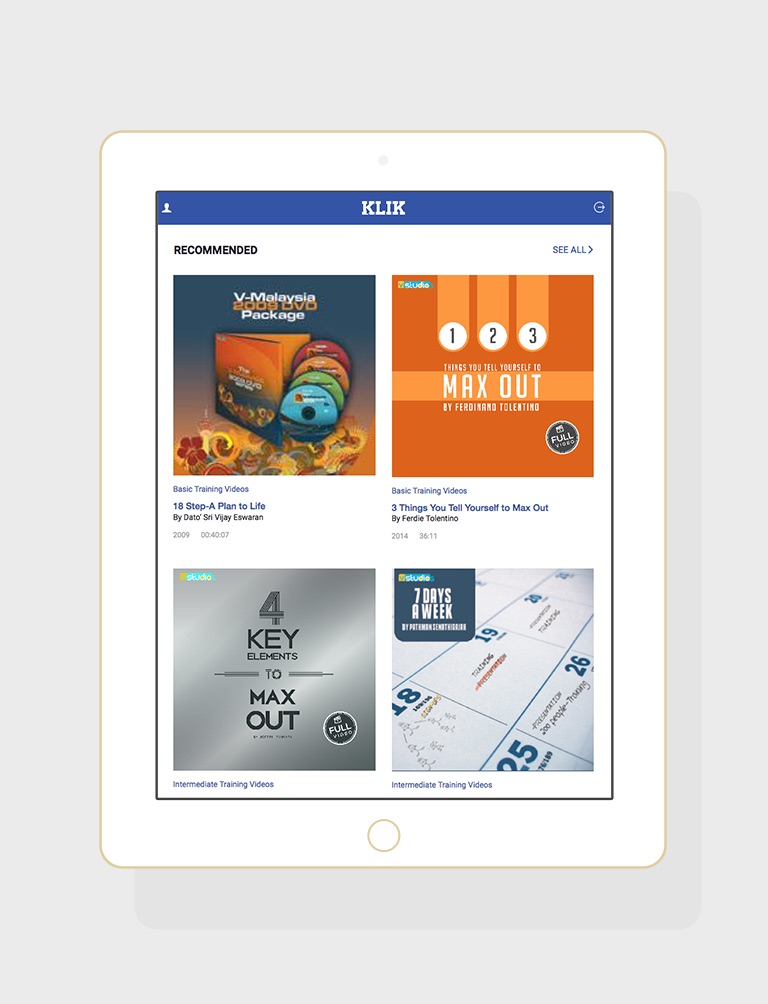 Behold our newest VTube+ membership: KLIK! This newest offer allows you to watch and stream VShoppe`s impressive roster of training and motivational DVDs. Complete with a personal account dashboard that keeps track of one`s activities, and playback, KLIK`s uniquely-tailored resources will be a big boon to any networking entrepreneur ready to take the industry by storm!