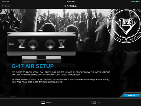 The Klipsch Air app provides a simple, familiar interface to assist in the set up of the award-winning Klipsch Gallery G-17 Air AirPlay enabled music system and the Klipsch Stadium Home Music System. The app also provides general AirPlay information about the technology and how it interacts with various Apple devices.