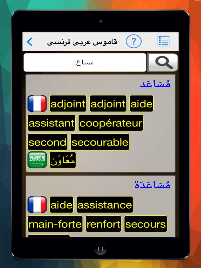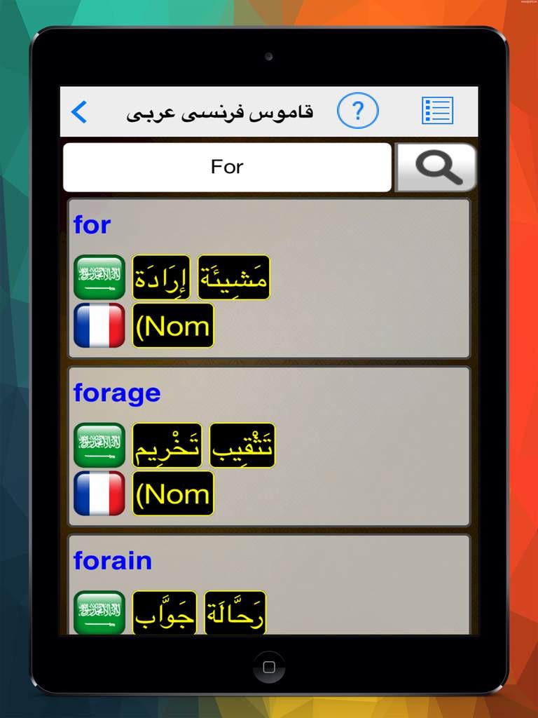 اسرع قاموس عربى-فرنسي للوصول الى ماتبحث عنة وبدون الحاجة الى التوصيل بالانترنت والافضل من ذلك انة مجانى وصغير الحجم