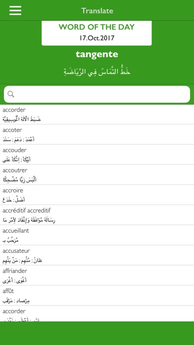 قاموس الترجمة الفورية والإحترافية مزدوج بحيث يتيح الترجمة من اللغة العربية إلى الفرنسية والعكس أيضا الترجمة من الفرنسية للعربية بشكل إحترافي حيث يقترح عليك الكلمات بمجرد كتابة الحرف أو الحروف الأولى منها.