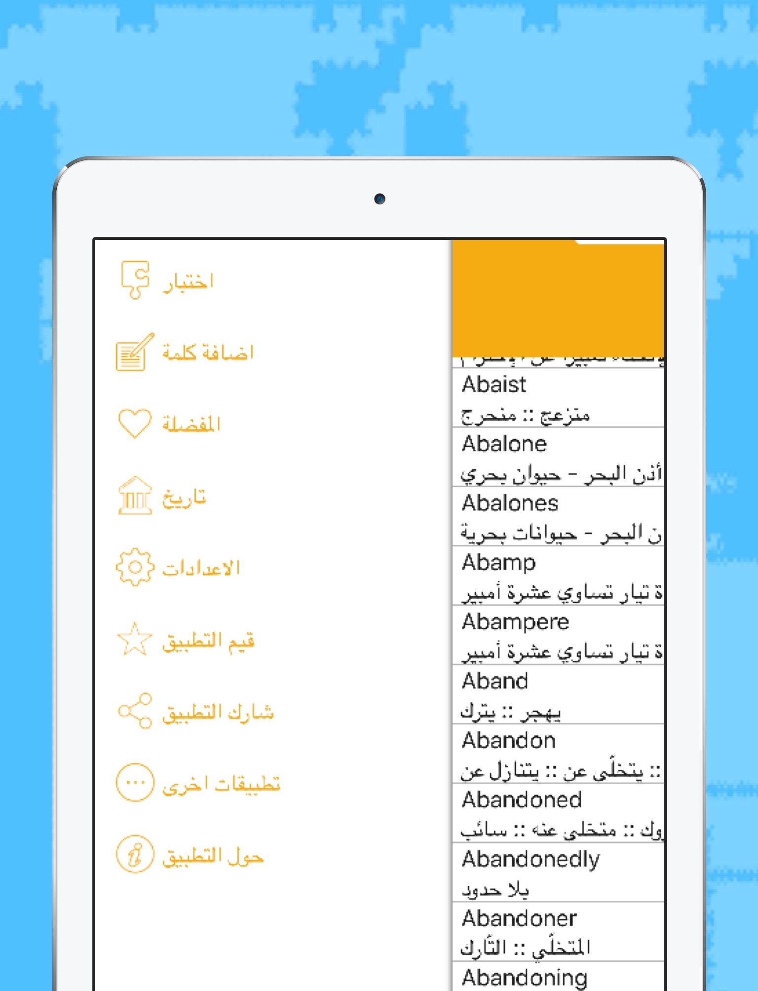 تستطيع تفضيل الكلمات التي تحتاجها كثيرا والرجوع اليها من خلال قائمة المفضلة