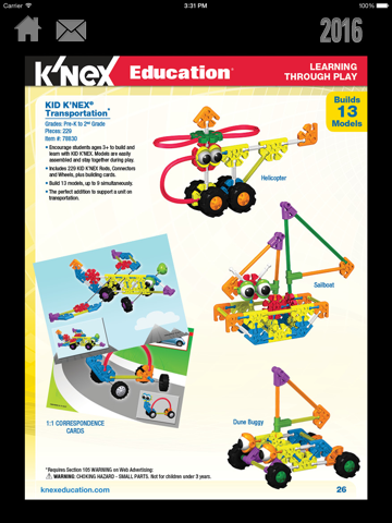 KNEX Education Retail Catalog. KNEX® is the next generation of construction sets. It inspires creativity, builds self-confidence and encourages interaction among children and parents. The possibilities are endless—best of all our rods, bricks and connectors are made in the USA! Download our app today for quick and easy access to our current Product line!
