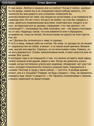Знаменитое произведение Абая «Қара сөз» (Слова назидания), состоящее из 45 кратких притч или философских трактатов. «Кара соз» создана Абаем на склоне лет. Он знает цену всему — делам, искушению, соблазнам, но все проходит и остается только мудрость.