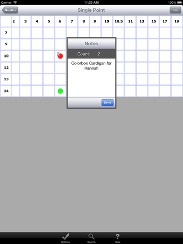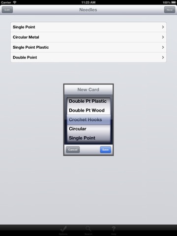 Have your entire knitting needle and crochet hook inventory at your fingertips with Knitting Needles. Before buying another needle or hook, check your Knitting Needles inventory to avoid duplicates. Add one or more set of needles with a touch on an easy-to-read chart. Change colors to show items on your shopping list or wish list, then change the color after purchase. Add notes to remind you of the pattern you have in mind for that needle. Quickly find your needles with the search function.