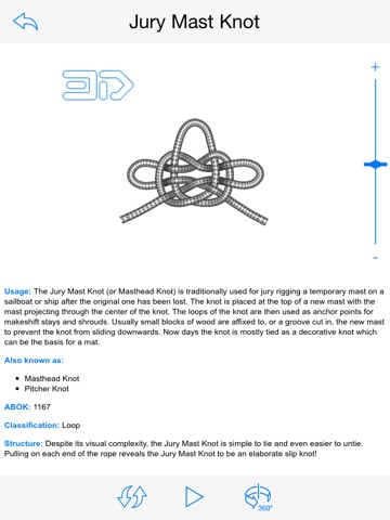 - Rotate knots in 3D space a full 360 degrees to view them from any angle
