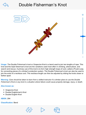 Choose from 30 knots and see how theyre tied in incredible detail. Watch the knot draw itself or use your finger to tie and untie the knot using swipe gestures.