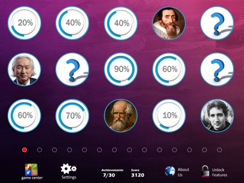 Base version includes 30 scientists; rest can be unlocked via in-app purchase.