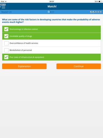 Subscribe to a course and decide between “Start match” and “Start course”. In KnowledgeMatch® mode, you can invite others via e-mail or Facebook and play against them. In course mode, you learn alone, but whenever and wherever you want.