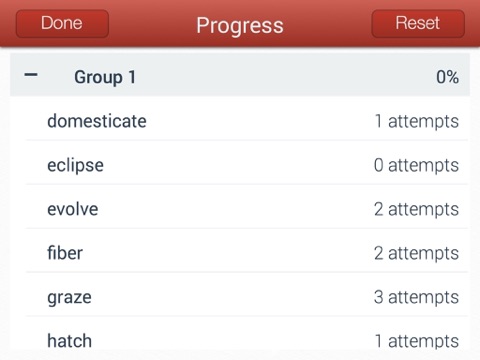 Simply swipe to indicate if you got the word correct or incorrect. The Knowsys program tracks your swipes and tags the words as “Learned” or “In Progress” based on your level of confidence. Progress Tracking lets you see how you’re doing on the word, the group, and the entire set!
