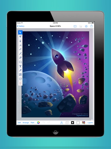 kNox Photo Studio is fun and simple way to make beautiful photos in seconds. create and share amazing pics! It is designed from scratch for the iPad. It supports paths, compound paths, text, images, groups, masks, gradient fills, and an unlimited number of layers.