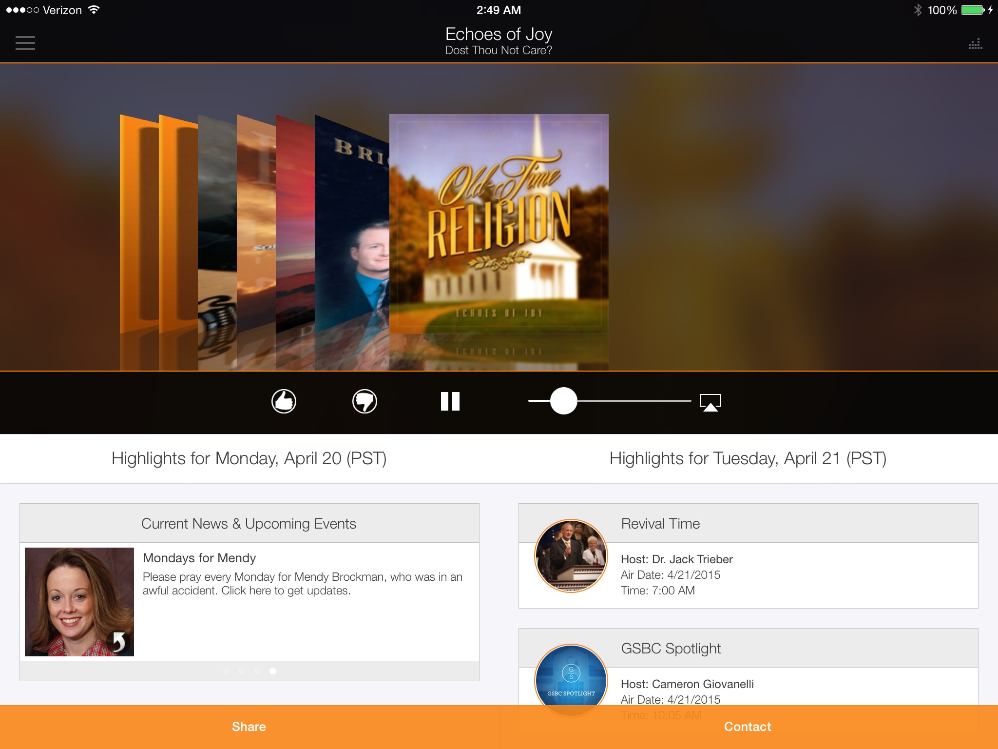 Using the KNVBC app you will be able to listen to our live broadcast while in the app and now in the background using iOS 4+ audio backgrounding.