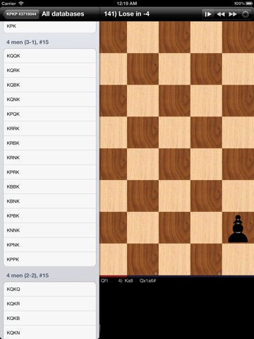 - view / study all 3-4 men endgames, select any game from them to dislay, see the result (distance to mate), the sequence of best moves