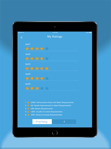 The managers will later complete the employees profiles once a year and the App will be populated with ratings manager feedback, and