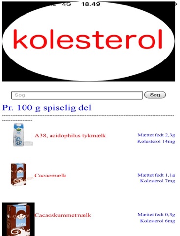 Her kan du se hvad de enkelte fødevarer indeholder af mættet fedt og kolesterol, når du handler ind eller planlægger aftensmaden.