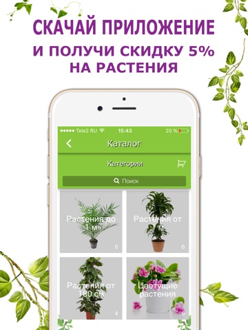 При заказе горшечных растений через мобильное приложение - Вы получаете 5% скидку!
