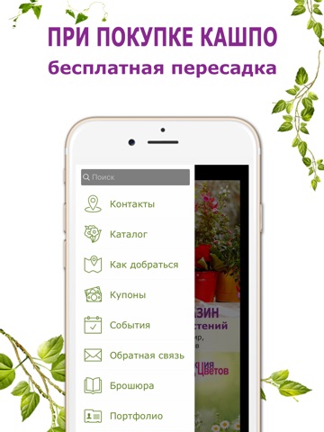 • Быстро и легко увидеть весь ассортимент горшечных растений и оформить заказ на понравившиеся растения со скидкой 5%;
