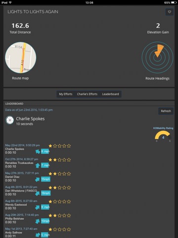 The same star rating is used for the wind data at the exact time and location of the KOM. With this information, the app calculates a KOM-ability rating: The less favorable the wind conditions at the time, the higher the KOM-ability rating.