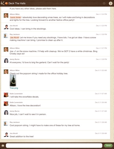 - Each Kona space provides group conversations and file sharing in context of the tasks, calendar events, and purpose of the group.