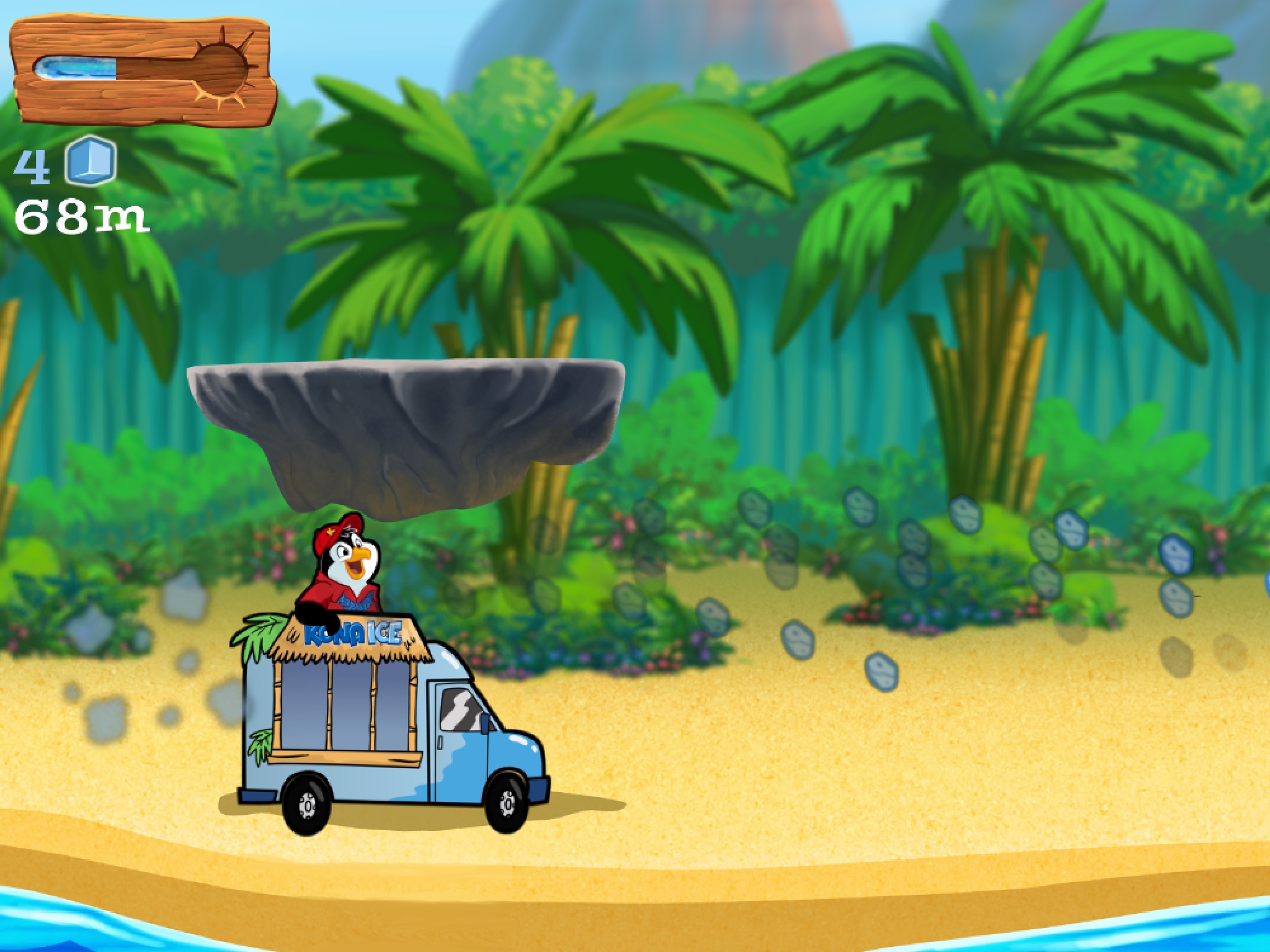 Island Rush is an endless runner game. The goal is to see how far you can make it across the island of Gooba Jooba! But beware…the longer you run, the faster you go!