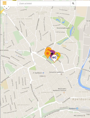 Zo vind je dé horeca hotspots in de stad, maar ook EHBO-posten en toiletten.