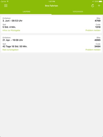 Durch das Antippen eines freien Rades können Sie dieses direkt entleihen.