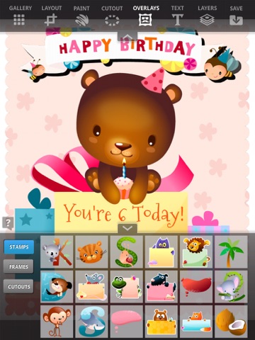 Take a picture, load an archived photo or select a customizable template from the KoolrPix Animal Story Gallery. Then get creative by adding text, romantic stamps and decorative frames. Even create your own unique cutout stamps from any source image and save them in your personal stamps gallery.