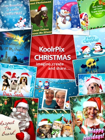 Share the spirit of peace and joy this holiday season by sending Christmas wishes to all your friends and loved ones with KoolrPix Christmas! Take a photo, load an existing one or select a ready-to-go template from the KoolrPix Christmas gallery. Just add your text, decorate with holiday stamps and frames, then save and share your creation!