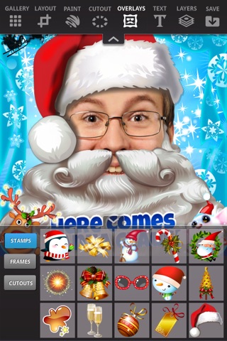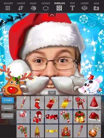 Take a picture, load an archived photo or select a Christmas template from the KoolrPix Christmas Gallery. Get creative by adding text, holiday stamps and decorative frames. Even create your own unique cutout stamps from any source image and save them in your personal stamps gallery. Finger paint on any design with variable brushstroke feathering and transparency.