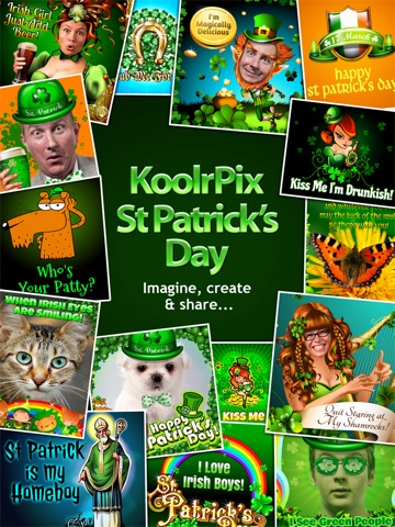Get your Irish on with KoolrPix St. Patricks Day! All you need in one photo personalization app to magically transform your photos to send a "Top of the Mornin To Ya" greeting to all your wanna be Irish friends! With KoolrPix, on St. Patty’s Day, everyone is Irish!