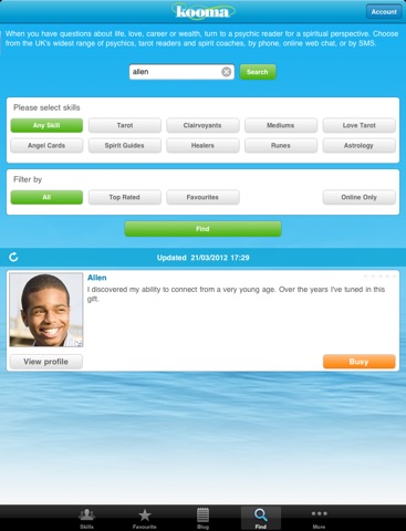 Live psychic readings, live tarot readings, daily horoscopes, psychic and tarot news available 24/7 from Kooma Psychics - Live. Our free to download app gives you access to 100’s of our gifted psychic and tarot card readers whether you are looking for guidance on love, family, relationships, career or finances we are sure there will be a psychic reader available to support you. We have psychic readers who specialise in tarot (Celtic cross, 3 card readings etc.) love tarot, clairvoyance, healers, runes, angel cards, Vedic astrology, horoscopes, mediums and spirit coaches.