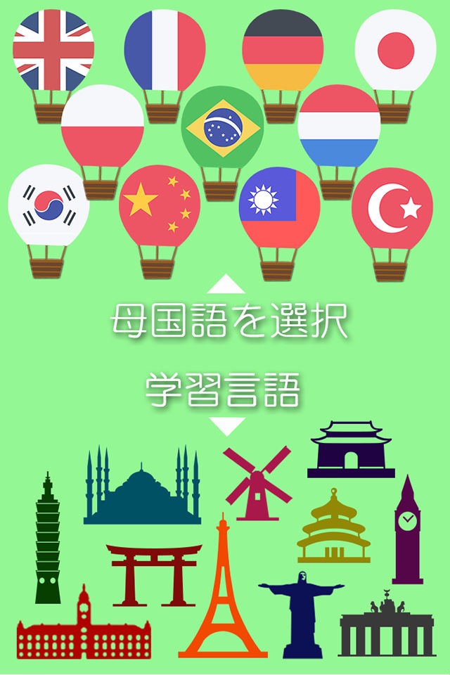 Look at the beautiful cards, listen to the native speaker’s voice and try to speak! Learn vocabulary effectively in an enjoyable way!