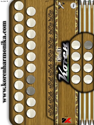 The "Koren CisD" aplication is a replica of original melodeon accordion Koren tuned in CisD or C#/D.