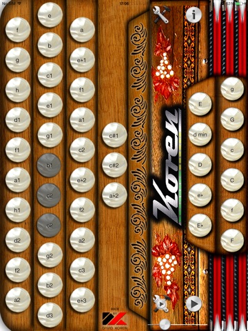 The "Koren pro3" aplication is a replica of original 3 row professional diatonic accordion Koren.