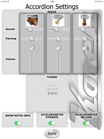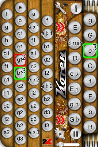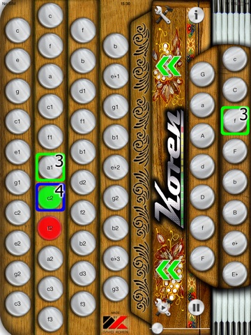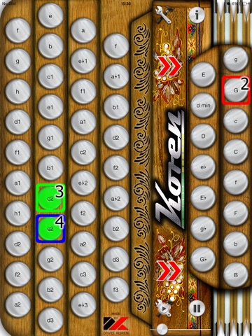 The "Koren pro4" aplication is a replica of original 4 row professional diatonic accordion Koren.