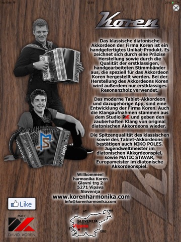 Application and accordion kOREN is approved by absolute Junior World Champion on diatonic accordion - NIKO POLES and absolute European Champion on diatonic accordion - MATIC ŠTAVAR.