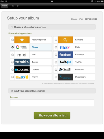 KoukouTV is a new service for turning your iPhone or iPad into a connected digital photo frame for sharing albums and pictures. The application supports various photo sharing services including Flickr, Picasa, Tumblr, Facebook, mixi, TwitPic, Lockerz and Photoshare.