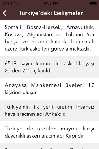 Türkiyedeki ve Dünyadaki tüm gelişmeler, Spor müsabakaları, Kültür ve Sanat etkinlikleri, Edebiyat ve Nobel Ödülleri ve daha birçok etkinlikten ilk sizin haberiniz olacak. Her gün eklenen yeni bilgilerle sınava hazırlandığınız sürede elinizden hiç eksiltmeyeceğiniz bir uygulama hazırladık. Lisans, Önlisans ve Ortaöğretim ayrıca bankacılık sınavları ve görevde yükselme sınavlarına yönelik güncel bilgiler içermektedir.