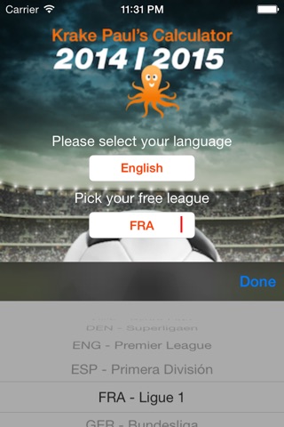 The app provides realistic, mathematically sound forecasts for football results of more than 20 different leagues (Champions League, Premier League, La Liga, Bundesliga, Serie A and Ligue 1, among others) for the season 2014/2015.