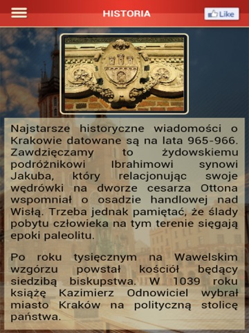 Znajdziecie tu ciekawostki o mieście, jego historii, zabytkach, legendach, ciekawych trasach oraz miejscach przyjaznych dzieciom. Aplikacja służyć będzie zarówno turystom jak i mieszkańcom Krakowa i regionu a zakładka wydarzenia, ułatwi wyszukiwanie imprez kulturalnych i rozrywkowych.