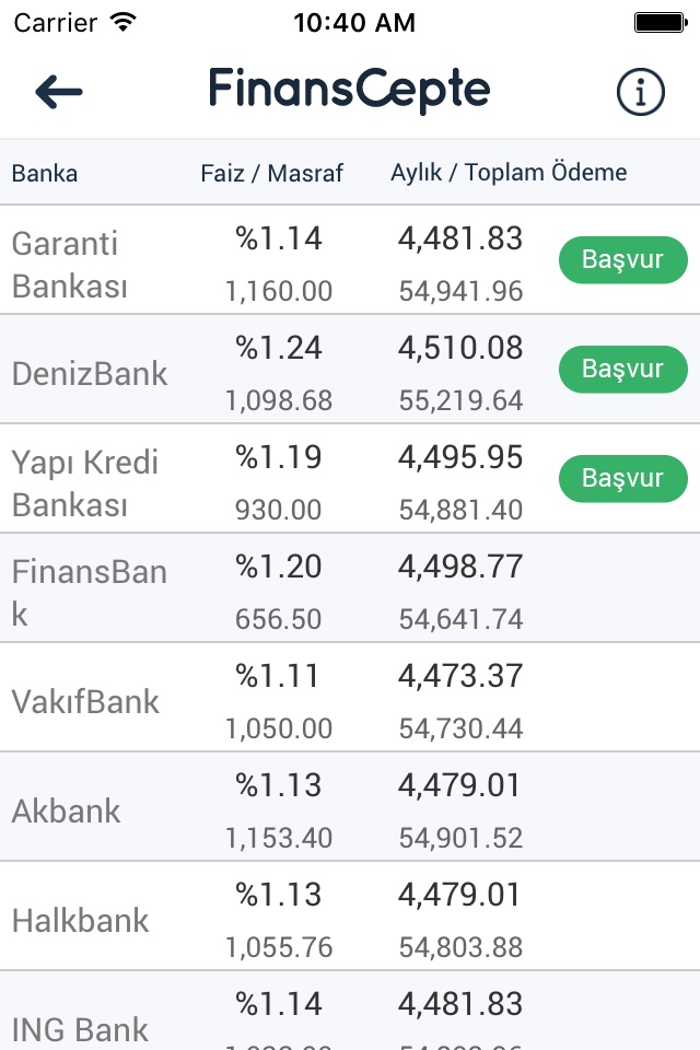 Kredi miktarına gore tüm bankaların kredi oranlarını ayrı ayrı hesaplamaya gerek kalmadan hepsini bir seferde görebiliyorum. Kredi oranları değişince de haber veriyor olmasi süper !