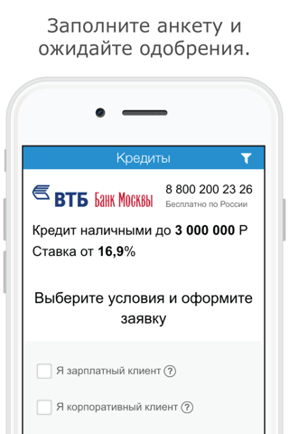 Подбор и оформление кредита больше не будет рутиной. Удобное приложение "Кредиты и займы" позволяет ознакомиться с подробными условиями "Топовых" банков и подать заявку на кредит через приложение с быстрым рассмотрением.